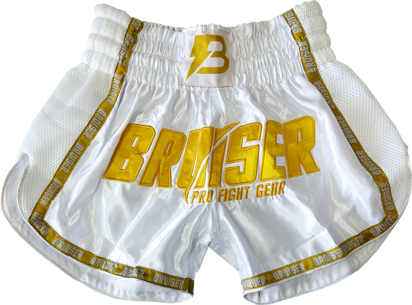 Distinguiti sul ring con i pantaloncini da boxe Bruiser, realizzati in satin lucido ad alta resistenza, con un design moderno e dettagli di qualità pensati per il fighter esigente. Il tessuto laterale in mesh traspirante favorisce una ventilazione ottimale, mantenendo il corpo fresco anche durante gli allenamenti più intensi. Disponibili nelle versioni nero oro e bianco oro, questi pantaloncini uniscono prestazioni tecniche e stile accattivante. Il logo Bruiser ricamato in oro sul davanti aggiunge un tocco professionale, mentre l’elastico in vita garantisce una vestibilità sicura e confortevole. Perfetti da abbinare a guantoni e paradenti della stessa linea per un look coordinato e impattante.